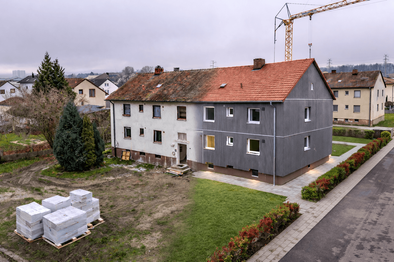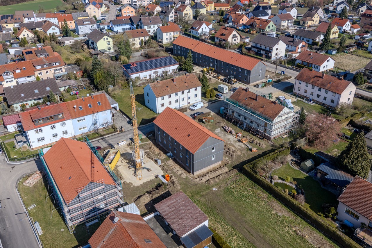 Bei der Sanierung von acht Wohnhäusern aus den 50er Jahren in Schwandorf setzen wir auf serielle Holzbauweise, lokale Partner und pragmatische technische Lösungen. Durch die Umstellung auf Fernwärme sinken CO₂-Ausstoß und Feinstaub deutlich. Das Heizen mit Holz- / Öleinzelöfen gehört nun der Vergangenheit an. Nach Abschluss der Maßnahmen werden pro Jahr rund 145 Tonnen CO2 eingespart. Gleichzeitig entstehen modernisierte Wohnungen, neue Gemeinschaftsflächen und Mietergärten. Transparente Kommunikation, digitale Tools und die enge Mieterbegleitung schaffen Vertrauen im gesamten Prozess und zeigen, wie ökologische Sanierung und nachbarschaftliche Entwicklung erfolgreich zusammenfinden können.